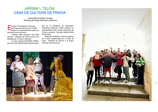 La obra, titulada ELEFANTE TANTE, yera de l’autora María Esther García López, que ye la presidenta de l’Asociación d’escritores d’Asturies. Taben invitaos a la representación tolos centros educativos de Pravia y presentó l’actividá l’escritor Dolfo Camilo Díaz.