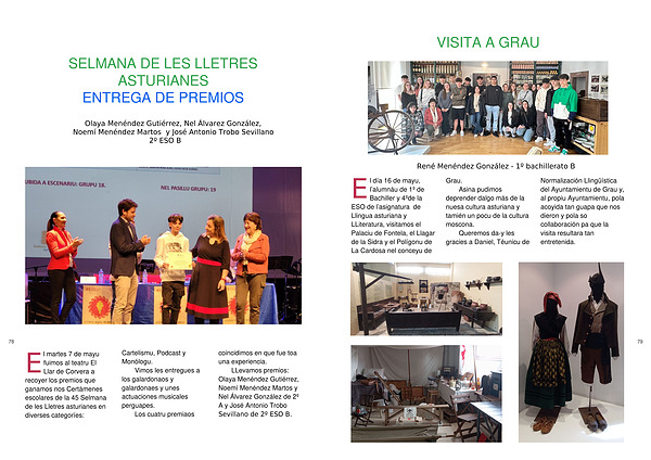 LLevamos premios: Olaya Menéndez Gutiérrez, Noemí Menéndez Martos y Nel Álvarez González de 2º A y José Antonio Trobo Sevillano de 2º ESO B.