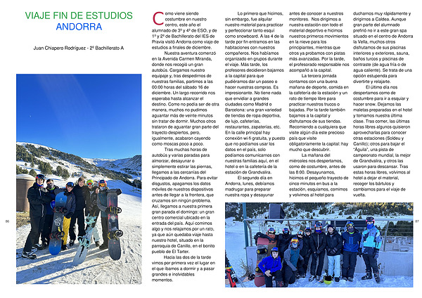 El segundo día en Andorra, lunes, debíamos madrugar para preparar nuestra ropa y desayunar antes de conocer a nuestros monitores. Nos dirigimos a nuestra estación con todo el material deportivo e hicimos nuestros primeros movimientos en la nieve para los principiantes, mientras que otros ya probamos con pistas más avanzadas. Por la tarde, el profesorado responsable nos acompañó a la capital.