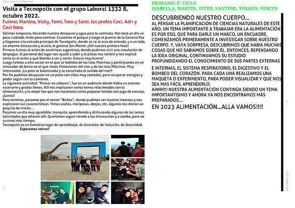 AL PENSAR LA PLANIFICACIÓN DE CIENCIAS NATURALES DE ESTE AÑO, UN TEMA IMPORTANTE A TRABAJAR ERA LA ALIMENTACIÓN. ES POR ESO, QUE PARA DARLE UN MARCO, UN ENCUADRE, COMENZAMOS PRIMERAMENTE A INVESTIGAR SOBRE NUESTRO CUERPO. Y, VAYA SORPRESA, DESCUBRIMOS QUE HABIA MUCHAS COSAS QUE NO SABIAMOS SOBRE ÉL. ENTONCES, REPENSANDO LA IDEA ORIGINAL, CONTINUAMOS SU ESTUDIO PROFUNDIZANDO EL CONOCIMIENTO DE SUS PARTES EXTERNAS E INTERNAS, EL SISTEMA RESPIRATORIO, EL DIGESTIVO Y EL BOMBEO DEL CORAZÓN. PARA CADA UNA REALIZAMOS UNA MAQUETA O EXPERIMENTO, PARA PODER VISUALIZAR Y QUE NOS SEA MAS FÁCIL APRENDERLO.