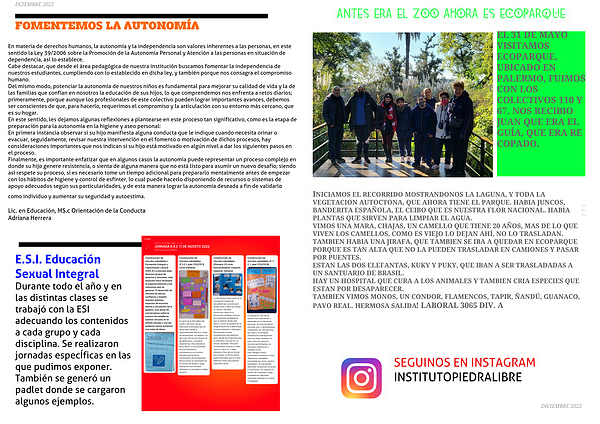 Cabe destacar, que desde el área pedagógica de nuestra institución buscamos fomentar la independencia de nuestros estudiantes, cumpliendo con lo establecido en dicha ley, y también porque nos consagra el compromiso humano.