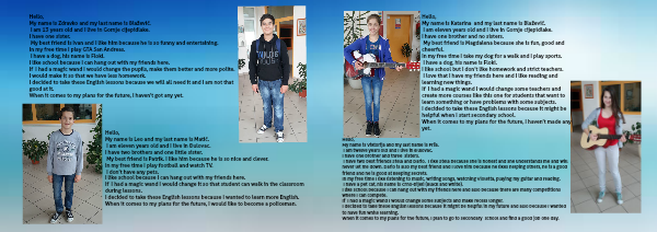I have two best friends Stela and Dario. I like Stela because she is honest and she understands me and will never let me down. Dario is also my best friend and I love him because he likes helping others, he is a good friend and he is good at keeping secrets.