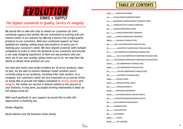You may also notice new model numbers for all of our products. Have no fear, we are able to convert whatever model numbers you're currently using to our products, including other sink vendors. As a company, our customer's needs are very important to us and we thrive on being able to provide the highest standards in Service, Quality and Integrity. We realize our success is directly related to the success of your business. A long term, successful working relationship is what we will always strive for.