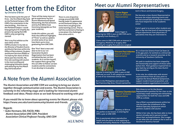 Brie chose to run for the Alumni Representative position for her class so she could help create amazing new networking opportunities for both her class and UNE COM as a whole.