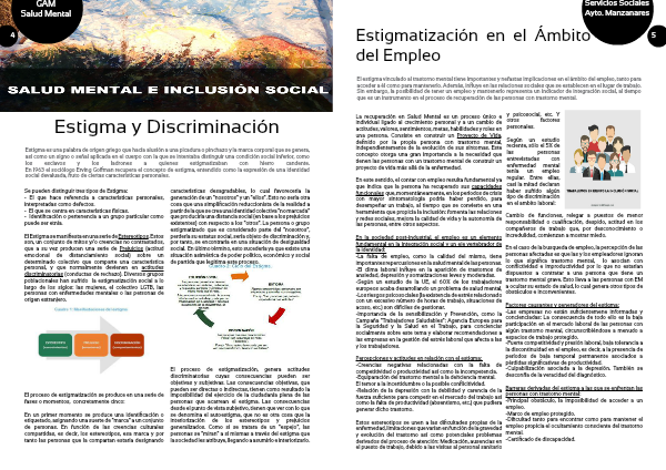 El estigma vinculado al trastorno mental tiene importantes y nefastas implicaciones en el ámbito del empleo, tanto para acceder a él como para mantenerlo. Además, influye en las relaciones sociales que se establecen en el lugar de trabajo. Sin embargo, la posibilidad de tener un empleo y mantenerlo representa un indicador de integración social, al tiempo que es un instrumento en el proceso de recuperación de las personas con trastorno mental.