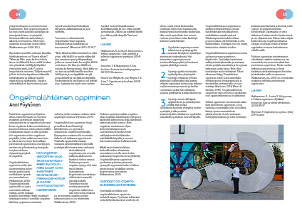edetään. Esimerkiksi ”Malli ongelman-ratkaisuprosessina” esitellään ongelma-lähtöisen oppimisen seitsemän vaihetta, joiden mukaan voidaan edetä oppimisprosessissa. (Hyvönen, 2014).
