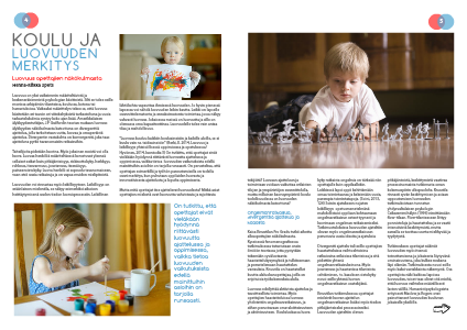 tekijöitä? Luovaan ajatteluun ja toimintaan voidaan vaikuttaa erilaisten tilojen ja ympäristöjen suunnittelulla, mutta millainen kasvuympäristö koulu todellisuudessa on luovuuden näkökulmasta katsottuna?