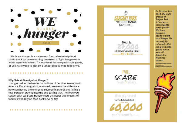 We Scare Hunger is a Halloween food drive to help food banks stock up on everything they need to fight hunger—the worst supervillain ever. Trick-or-treat for non-perishable goods, or use Halloween to kick off a longer school-wide food drive.