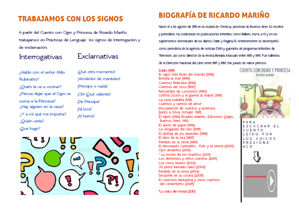 A partir del Cuento con Ogro y Princesa de Ricardo Mariño trabajamos en Prácticas de Lenguaje los signos de interrogación y de exclamación.