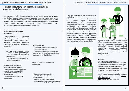 Lehden tekeminen oppimismenetelmänä täyttää parhaimmillaan lukuisia tärkeitä uuden opetussuunnitelman (POPS 2016) tavoitteita. Aiempien esimerkkien lisäksi esimerkiksi samasta työstä hyötyvät monenlaiset oppimistyylit, oppimista tapahtuu yhteistyössä ja oppimisympäristöjä voidaan käyttää monipuolisesti.