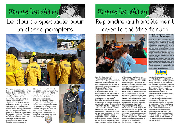 Lors des visites du chef d'établissement dans les écoles du réseau Lucie Aubrac pour présenter le collège, invarriablement, aux cotés des questions sur la scolarité future de leurs enfants, les parents témoignent d'une forme d'inquiétude sourde sur le harcèlement et les écrans. SI le collège prend à bras le corps cette problématique depuis quelques années au travers par exemple le projet pHare ou la semaine consacrée à la prévention contre le harcèlement , il s'agissait encore de renforcer les actions de prévention à cet endroit et tenter de répondre à ces inquiétudes. En partenariat avec la MDH Balladins, le Codase et l'association Pangolin, une session des vacances apprenantes au mois d'octobre à été initiée à titre expérimental pour traiter par le biais du théatre forum la question du harcèlement et des écrans. Une façon à la fois frontale et détournée d'aborder avec les élèves cette violence insidieuse vécue en classe et sur les réseaux sociaux. A l'aide de la compagnie Les Noodles, les élèves ont ainsi été invités à poser des mots sur ce qu'ils ont vus, entendus et parfois meme malheureusement vécu. Le théatre forum, forme de théatre interactive, les invitent à la suite de saynète prennant pour point de départ des situations réelles, à prendre du recul et à réfléchir collectivement sur la manière de traiter le problème du harcèlement. Le théatre forum est ainsi conçu pour favoriser l' empathie en permettant aux spectateurs de prendre la place des différents acteurs de la pièce. Cela permet de responsabiliser tous les spectateurs et de montrer que dans le cas du harcèlement comme dans d'autre, il est possible d'etre acteur de la situation et d'interrompre le silence sur la situation de harcèlement. C'est donc une manière de s' entrainer, en toute sécurité, à réagir au harcèlement et détailler tous les outils à disposition pour y remédier. Le travail réalisé par les élèves a ensuite été présenté le 1er mars dernier en soirée devant des parents d' élèves venus nombreux. Il s'agissait à la fois de montrer que dans le cas du harcèlement, eux comme les élèves ou les personnels de l'établissement, ont un role fondamental à jouer. Les saynètes présentés ont ainsi permis d'introduitre un temps de débat sur la question des écrans et de l'usage des réseaux sociaux. L'enjeu n'était ni de faire la morale ou de leur dévoiler des solutions miracles pour prémunir leurs enfants des dangers des écrans ou des réseaux sociaux mais bien de montrer qu'ici comme ailleurs, le harcèlement ou l'usage irraisonné des écrans n'est pas une fatalité.