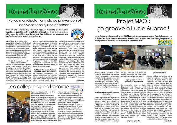 « Protéger et servir », telle est la devise de la Police Municipale. Virgil et Frédéric sont venus représenter leur profession. En intervenant dans les classes de quatrième, les deux policiers de la ville de Grenoble ont pu expliquer leur métier, leurs missions, mais également répondre aux différentes questions que pouvaient se poser les élèves.