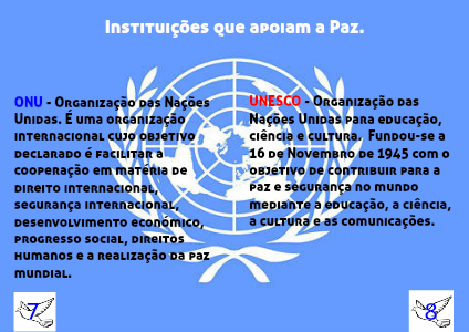 UNESCO - Organização das Nações Unidas para educação, ciência e cultura. Fundou-se a 16 de Novembro de 1945 com o objetivo de contribuir para a paz e segurança no mundo mediante a educação, a ciência, a cultura e as comunicações.