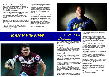The Eels' major off-season talking point was that of the leaving of fullback Jarryd Hayne who has moved to the United States in his pursuit of his NFL dream.