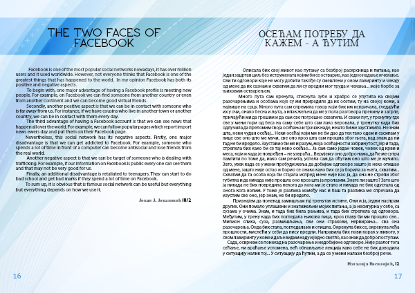 To begin with, one major advantage of having a Facebook profile is meeting new people. For example, on Facebook we can find someone from another country or even from another continent and we can become good virtual friends.