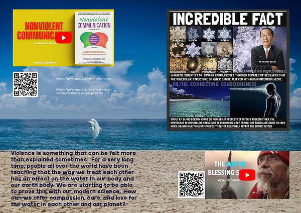 Violence is something that can be felt more than explained sometimes. For a very long time, people all over the world have been teaching that the way we treat each other has an effect on the water in our body and our earth body. We are starting to be able to prove this with our modern science. How can we offer compassion, care, and love for the water in each other and our planet?