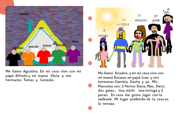 Me llamo Agustina. En mi casa vivo con mi papá Alfredo y mi mamá Silvia y mis hermanos Tomas y Gonzalo.