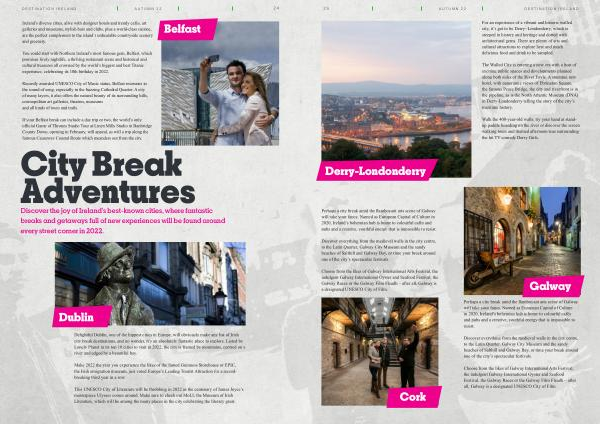 Perhaps a city break amid the flamboyant arts scene of Galway will take your fancy . Named as European Capital of Culture in 2020 , Ireland ’ s bohemian hub is home to colourful cafés and pubs and a creative , youthful energy that is impossible to resist .
