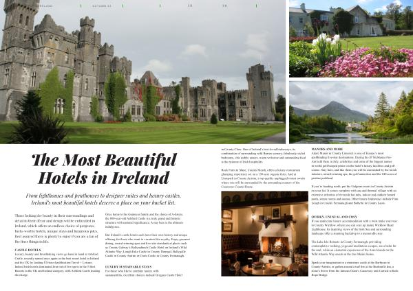 39 AUTUMN 22 DESTINATION IRELAND in County Clare . One of Ireland ’ s best-loved hideaways , its combination of surrounding wild Burren scenery , fabulously styled bedrooms , chic public spaces , warm welcome and outstanding food is the epitome of Irish hospitality .