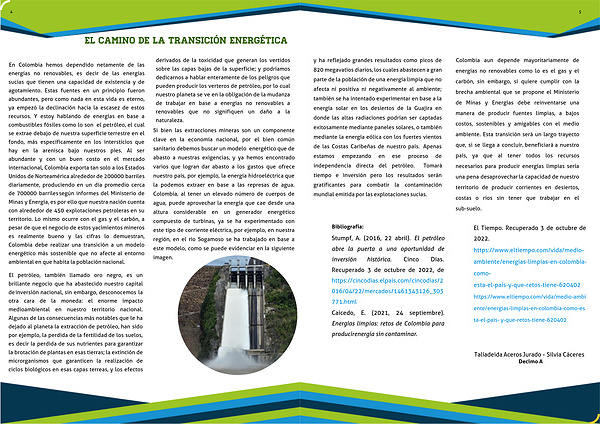 Colombia aun depende mayoritariamente de energías no renovables como lo es el gas y el carbón, sin embargo, si quiere cumplir con la brecha ambiental que se propone el Ministerio de Minas y Energías debe reinventarse una manera de producir fuentes limpias, a bajos costos, sostenibles y amigables con el medio ambiente. Esta transición será un largo trayecto que, si se llega a concluir, beneficiará a nuestro país, ya que al tener todos los recursos necesarios para producir energías limpias sería una pena desaprovechar la capacidad de nuestro territorio de producir corrientes en desiertos, costas o ríos sin tener que trabajar en el sub-suelo.