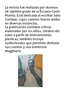 La revista fue realizada por alumnos de séptimo grado de la Escuela Casto Munita. Está dedicada al escritor Julio Cortázar, cuyos cuentos fueron leídos en diversas instancias.