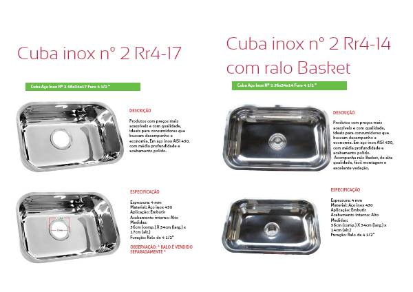 Produtos com preços mais acessíveis e com qualidade, ideais para consumidores que buscam desempenho e economia. Em aço inox AISI 430, com média profundidade e acabamento polido.