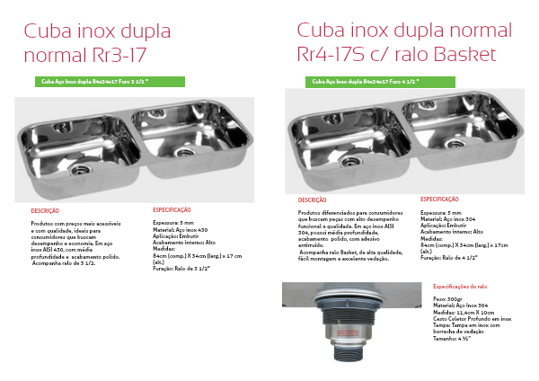 Produtos com preços mais acessíveis e com qualidade, ideais para consumidores que buscam desempenho e economia. Em aço inox AISI 430, com média profundidade e acabamento polido.