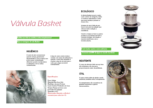 A válvula Basket possui o maior cesto coletor da categoria, retém os resíduos alimentares e evita que esses resíduos poluam os nossos rios.