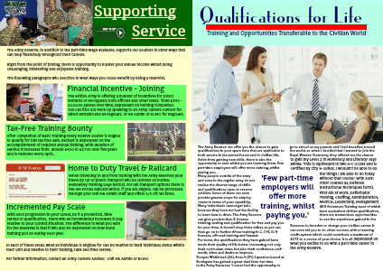 The Army Reserve can offer you the chance to gain qualifications in your spare time that are applicable to both service in the armed forces and in civilian life. Aside from gaining new skills, there is also the opportunity to earn whilst you are learning them. Few part-time employers will offer more training, whilst paying you.