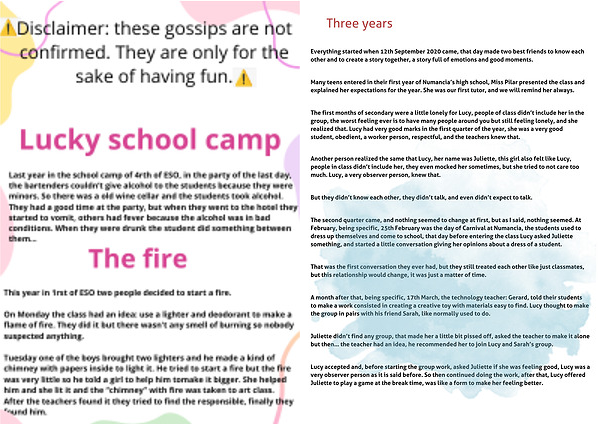 A month after that, being specific, 17th March, the technology teacher: Gerard, told their students to make a work consisted in creating a creative toy with materials easy to find. Lucy thought to make the group in pairs with his friend Sarah, like normally used to do.