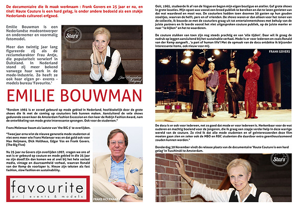 De couture stukken van toen zijn nog steeds prachtig en van 'alle tijden'. Daar wil ik graag de nadruk op leggen aansluitend bij het sustainable verhaal. Mode is er voor iedereen en zoals Ronald van der Kemp aangeeft , 'a part of human life'! Met de opmaak van de docu ontdekte ik bijzonder interessante items, ook nieuw voor mij.