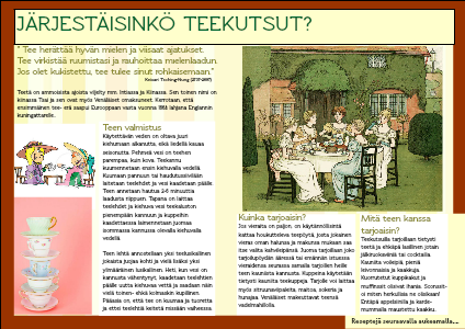 Jos vieraita on paljon, on käytännöllisintä kattaa houkutteleva teepöytä, josta jokainen vieras oman halunsa ja makunsa mukaan saa itse valita kahvileipänsä. Juoma tarjoillaan joko tarjoilupöydän ääressä tai emännän istuessa vieraidensa seurassa samalla tarjoillen heille teen kauniista kannusta. Kuppeina käytetään tietysti kauniita teekuppeja. Tarjolle voi laittaa myös sitruunaviipaleita, maitoa, sokeria ja hunajaa. Venäläiset makeuttavat teensä vadelmahillolla.