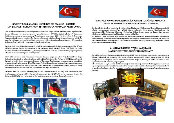As Beykent Doga Anatolian High School we have completed our first movement to Germany in Waldkraiburg, Gymnasium Waldkraiburg within the scope of SUN Project that we carry on. Teachers and administrators of our partner schools from Germany, Finland, Luxembourg, Italy and France have attended to the meeting.