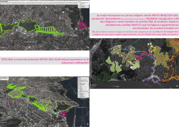 olan bölgelerin, kendi olanakları ile şehirde YEŞİL ile kurdukları ilişkilerin