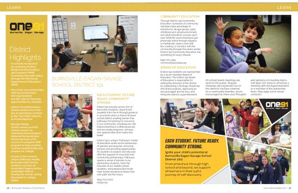 From preschool through high school and beyond , we support all learners in their joyful journey of self-discovery . burnsvillechamber . com | 17