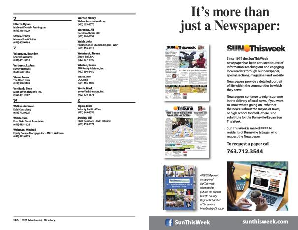 APG / ECM parent company of SunThisWeek is honored to publish the annual Dakota County Regional Chamber of Commerce Membership Directory .