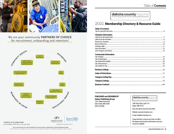 Chamber Information Letter From the Board Chair ................................................................................................................................................................................................. 7 Letter From the President ...................................................................................................................................................................................................... 8 About Your Chamber ................................................................................................................................................................................................................ 9 Board of Directors ..................................................................................................................................................................................................................... 10 Chamber Staff ............................................................................................................................................................................................................................. 11 Area Information ....................................................................................................................................................................................................................... 12 2021 Programs and Events ................................................................................................................................................................................................ 16