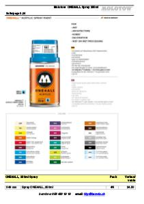 Molotow ONE4ALL Spray 250ml Seite/page 0.24 ONE4ALL, 250ml Spray 349 xxx Pack Spray ONE4ALL, 250ml bamfone: 056 430 19 19 4N email: fdp@bam4u.ch Verkauf vente 24.50
