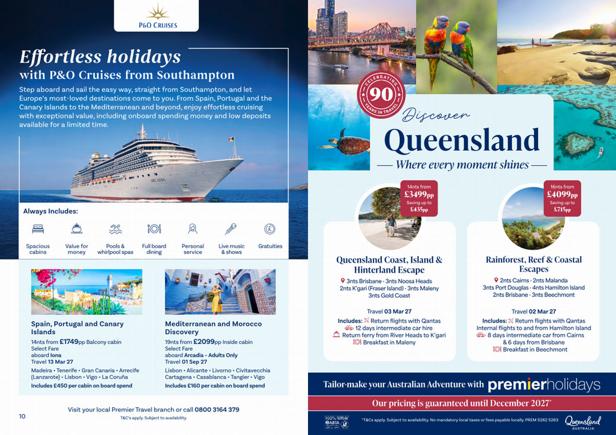 Visit your local Premier Travel branch or call 0800 3164 379 T & C’ s apply. Subject to availability.