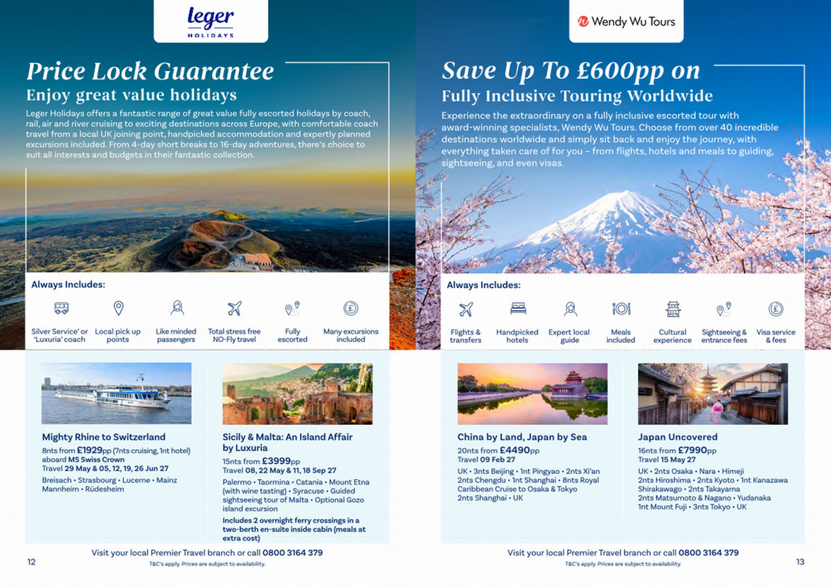 Visit your local Premier Travel branch or call 0800 3164 379 T & C’ s apply. Prices are subject to availability.