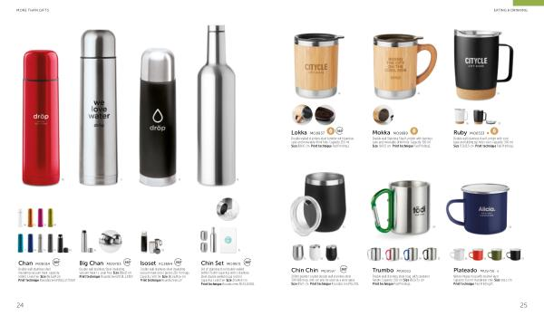 Double wall stainless steel insulating vacuum flask and 2 pieces 220 ml mugs . Capacity : 500 ml . Size Ø6,5x24,5x cm Print technique Roundscreen , L , P