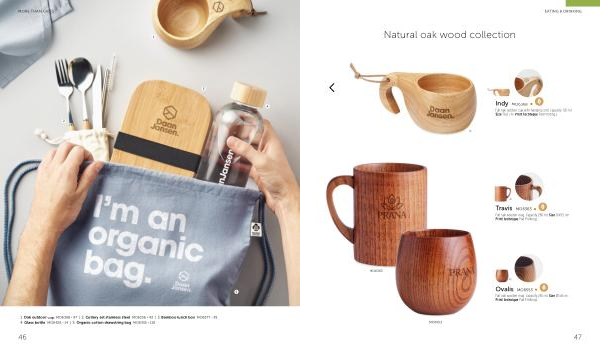 1 . Oak outdoor cup MO6368 › 47 | 2 . Cutlery set stainless steel MO6336 › 43 | 3 . Bamboo lunch box MO6377 › 39 4 . Glass bottle MO6426 › 14 | 5 . Organic cotton drawstring bag MO6355 › 119