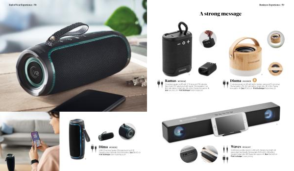 5.0 Wireless soundbar speaker in ABS with changing mood light and phone stand functionality . Rechargeable 2000 mAh Li-ION battery included . Output data : 5W . Playing time approx . 4h . Size 45x6,1x5,8 cm Print technique Screen printing