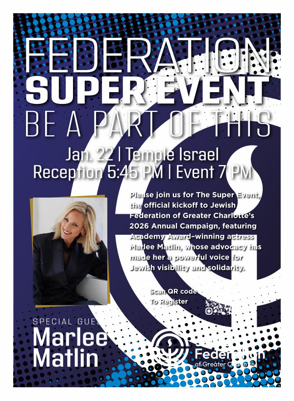 Please join us for The Super Event, the official kickoff to Jewish Federation of Greater Charlotte’ s 2026 Annual Campaign, featuring Academy Award – winning actress Marlee Matlin, whose advocacy has made her a powerful voice for Jewish visibility and solidarity.