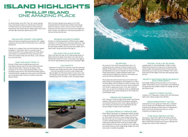 SURFING As a one-of-a-kind, world-class destination with a rich surfing history and a wave for all kinds of weather and abilities, Phillip Island is home to Victoria‘ s first National Surfing Reserve and some of the best surf spots in Victoria. Phillip Island boasts a range of different breaks, from sheltered bays for beginners to powerful reef breaks; you will be sure to find somewhere that is on.