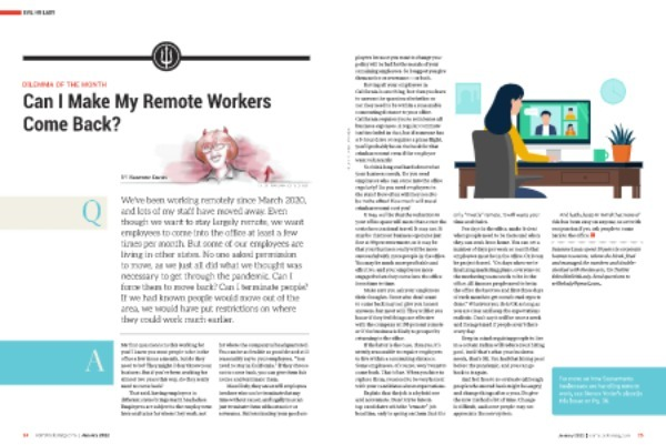 |  SHUTTERSTOCK ILLUSTRATION |  ployees because you want to change your policy will be bad for the morale of your remaining employees . So I suggest you give them notice or severance — or both .  Having all your employees in California is one thing , but then you have to answer the question of whether or not they need to be within a reasonable commuting distance to your office . California requires you to reimburse all business expenses . A regular commute isn ’ t included in that , but if someone has a 9-hour drive or requires a plane flight , you ’ ll probably be on the hook for that reimbursement even if the employee went voluntarily .  So think long and hard about what your business needs . Do you need employees who can come into the office regularly ? Do you need employees in the state ? How often will they need to be in the office ? How much will travel reimbursement cost you ?  It may well be that the reduction in your office space will more than cover the costs for occasional travel . It may not . It may be that your business operates just fine at 99 percent remote , or it may be that your business really will be more successful with more people in the office . You may be much more profitable and effective , and your employees more engaged when they come into the office from time to time .  Make sure you ask your employees their thoughts . Some who don ’ t want to come back may not give you honest answers , but most will . They will let you know if they feel things are effective with the company at 100 percent remote or if the business is likely to prosper by returning to the office .  If the latter is the case , then yes , it ’ s utterly reasonable to require employees to live within a commuting distance . Some employees , of course , won ’ t want to come back . That ’ s fine . When you hire to replace them , you need to be very honest with your candidates about expectations .  Explain that the job is a hybrid one and not remote . Don ’ t try to lure in top candidates with the “ remote ” job headline , only to spring on them that it is |  only “ mostly ” remote . It will waste your time and theirs .  For days in the office , make it clear when people need to be there and when they can work from home . You can set a number of days per week or month that employees must be in the office . Or it can be project-based . “ On days when we ’ re finalizing marketing plans , everyone on the marketing team needs to be in the office . All finance people need to be in the office the last two and first three days of each month to get month-end reports done .” Whatever you do is OK as long as you are clear and keep the expectations realistic . Don ’ t say it will be once a week and then get mad if people aren ’ t there every day .  Keep in mind requiring people to live in a certain radius will reduce your hiring pool , but if that ’ s what your business needs , that ’ s OK . You had that hiring pool before the pandemic , and you can go back to it again .  And feel free to re-evaluate ( although people who moved back might be angry ) and change things after a year . Do give the new method a bit of time . Change is difficult , and some people may not appreciate the new system . |  And lastly , keep in mind that none of this has been easy on anyone , so act with compassion if you ask people to come back to the office .  Suzanne Lucas spent 10 years in corporate human resources , where she hired , fired and managed the numbers and doublechecked with the lawyers . On Twitter @ RealEvilHRLady . Send questions to evilhrlady @ gmail . com .  For more on how Sacramento businesses are handling remote work , see Steven Yoder ’ s piece in this issue on Pg . 36 . |
