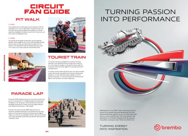 Durante o fim de semana das WSBK, faça parte de um momento verdadeiramente épico e acompanhe-nos em duas voltas à incrível pista do Autódromo Internacional do Algarve. Traga a sua mota e o seu passageiro favorito, desfrute da Parade Lap a baixa velocidade, explorando cada detalhe desta autêntica“ montanha-russa”.