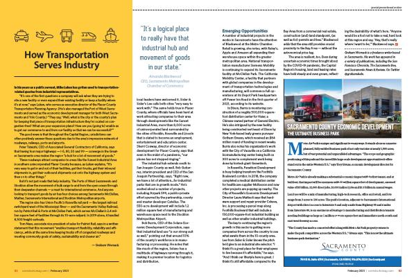 A number of industrial projects in the works in Sacramento have the attention of Blackwood at the Metro Chamber . Retail is growing , she notes , with Raley ’ s , Apple and Amazon all expanding their warehouse space within the greater metropolitan area . National transportation manufacturer Siemens Mobility is continuing to expand its Sacramento facility at McClellan Park . The California Mobility Center , a facility that partners with global companies in the development of transportation technologies and manufacturing , will commence full operations at its Depot Park headquarters off Power Inn Road in the first quarter of 2021 , according to its website .