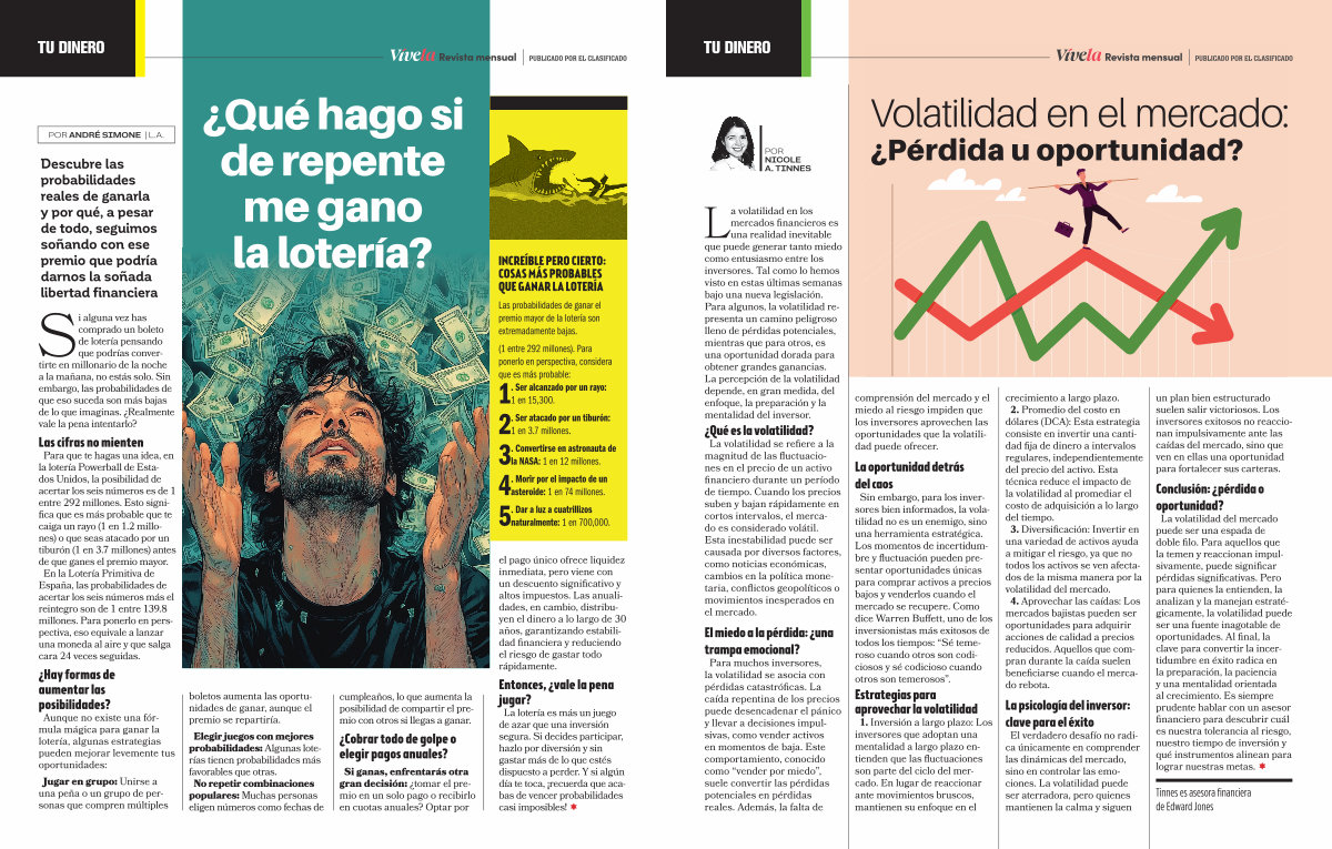 La volatilidad del mercado puede ser una espada de doble filo. Para aquellos que la temen y reaccionan impulsivamente, puede significar pérdidas significativas. Pero para quienes la entienden, la analizan y la manejan estratégicamente, la volatilidad puede ser una fuente inagotable de oportunidades. Al final, la clave para convertir la incertidumbre en éxito radica en la preparación, la paciencia y una mentalidad orientada al crecimiento. Es siempre prudente hablar con un asesor financiero para descubrir cuál es nuestra tolerancia al riesgo, nuestro tiempo de inversión y qué instrumentos alinean para lograr nuestras metas. �