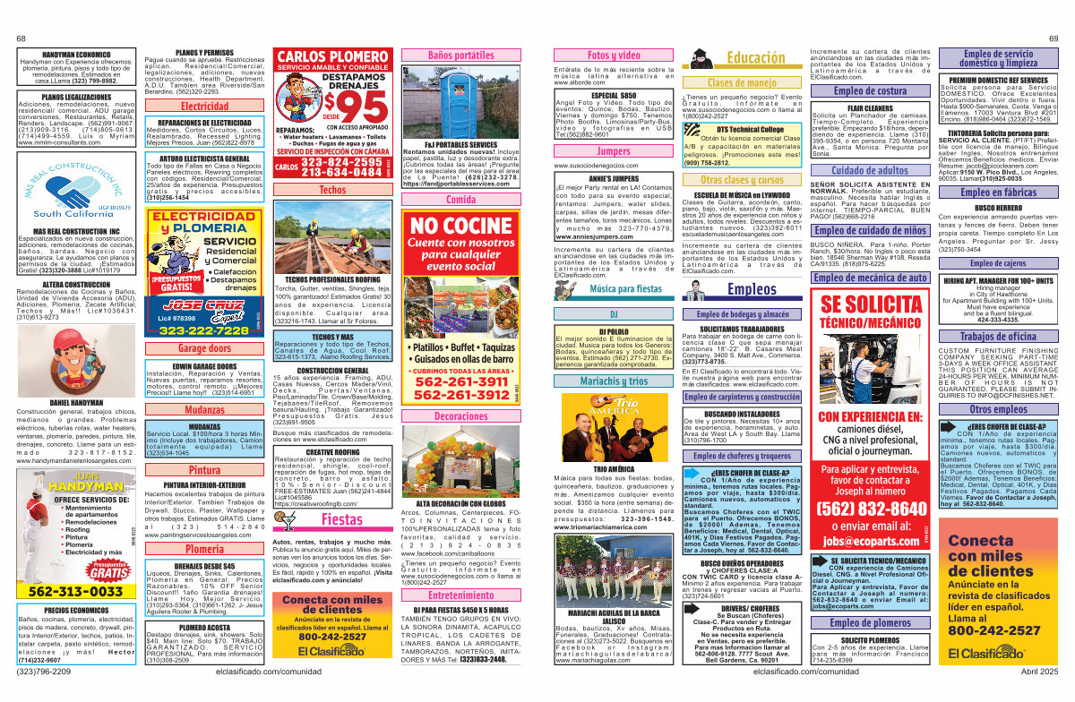 Autos, rentas, trabajos y mucho más. Publica tu anuncio gratis aquí. Miles de personas ven los anuncios todos los días. Servicios, negocios y oportunidades locales. Es fácil, rápido y 100 % en español. ¡ Visita elclasificado. com y anúncialo!